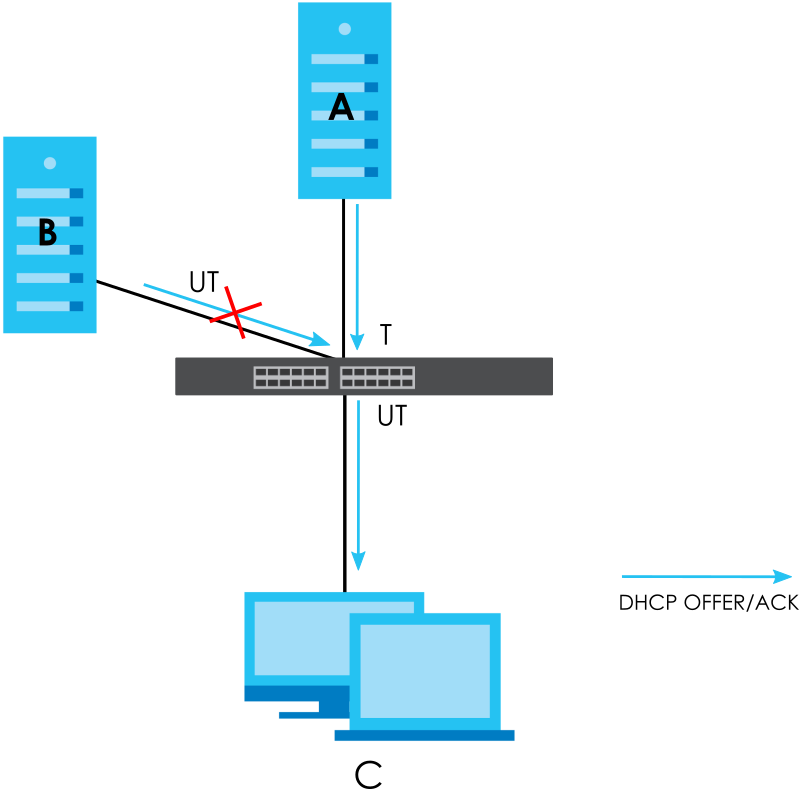 Server Trusted state | Select whether this port is a trusted port (Trusted) or an untrusted port (Untrusted). Trusted ports are connected to DHCP servers or other switches, and the Switch discards DHCP packets from trusted ports only if the rate at which DHCP packets arrive is too high. Untrusted ports are connected to subscribers, and the Switch discards DHCP packets from untrusted ports in the following situations: • The packet is a DHCP server packet (for example, OFFER, ACK, or NACK). • The source MAC address and source IP address in the packet do not match any of the current bindings. • The packet is a RELEASE or DECLINE packet, and the source MAC address and source port do not match any of the current bindings. • The rate at which DHCP packets arrive is too high. |