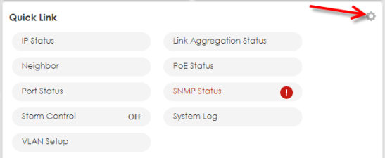 Quick Link | This section provides shortcut links to specific configuration screens. Click the edit button to choose the quick links to show. |