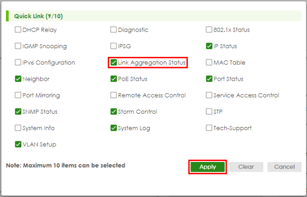 PoE Usage | For PoE models. This field displays the amount of power the Switch is currently supplying to the connected PoE-enabled devices and the total power the Switch can provide to the connected PDs. It also shows the percentage of PoE power usage. When PoE usage reaches 100%, the Switch will shut down PDs one-by-one according to the PD priority which you configured in PORT > PoE Setup > PoE Setup. |